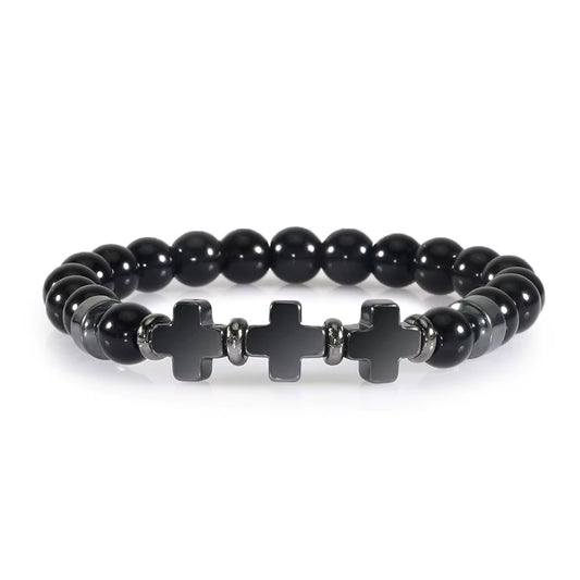 8Mm Natural Stone Bracelet Christian Jesus Cross Bracelets for Women Men Elastic Rope Beaded Bangles Yoga Rosary Jewelry Gifts